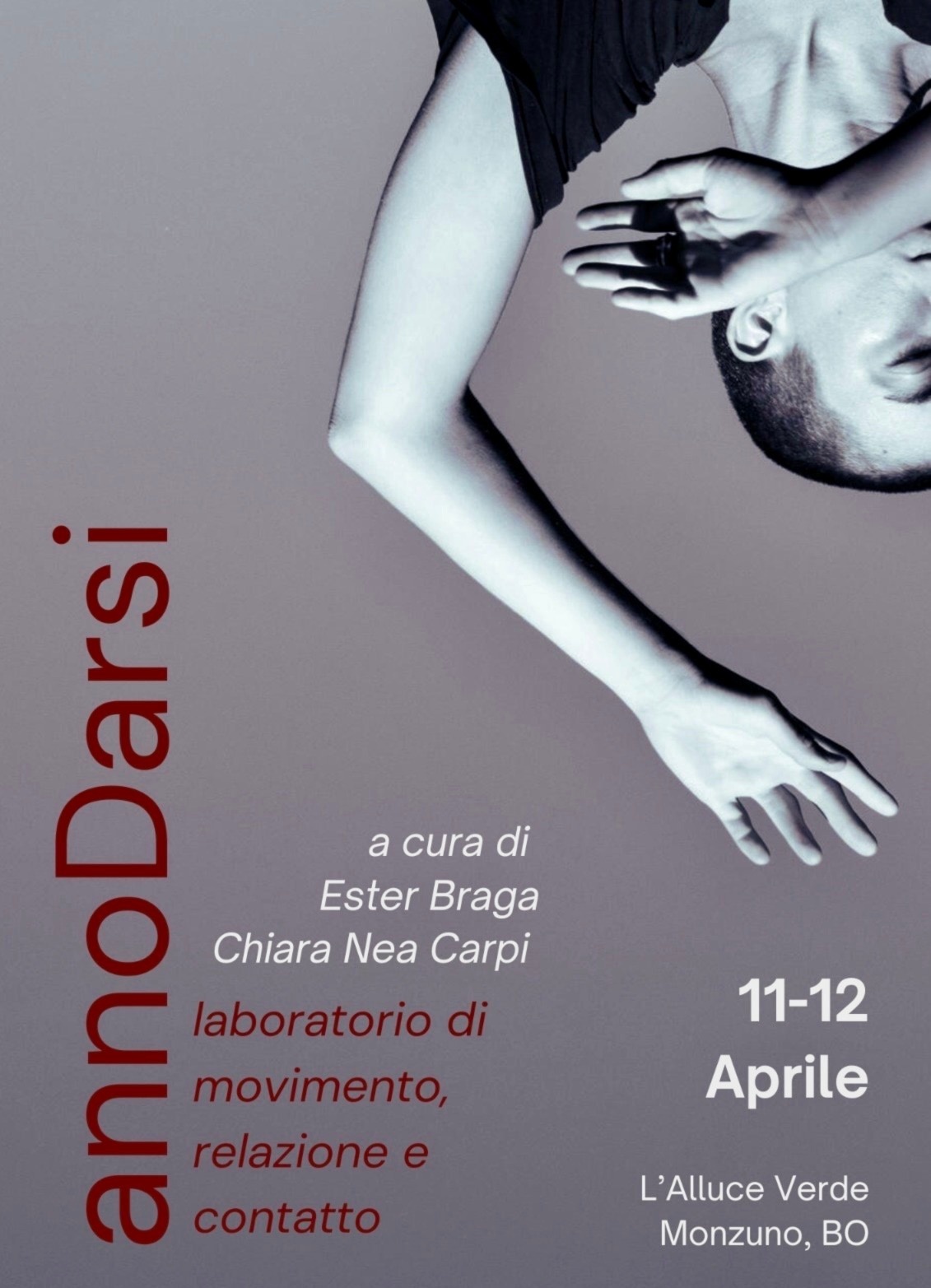 annoDarsi aims to be an opportunity for exploration through the body in movement. It was born from the dance encounter between Nea and Ester, from their love foe Contact Improvisation, and from their mutual curiosity for the dimensions that open up when bodies relate, when space becomes body and the body becomes space.