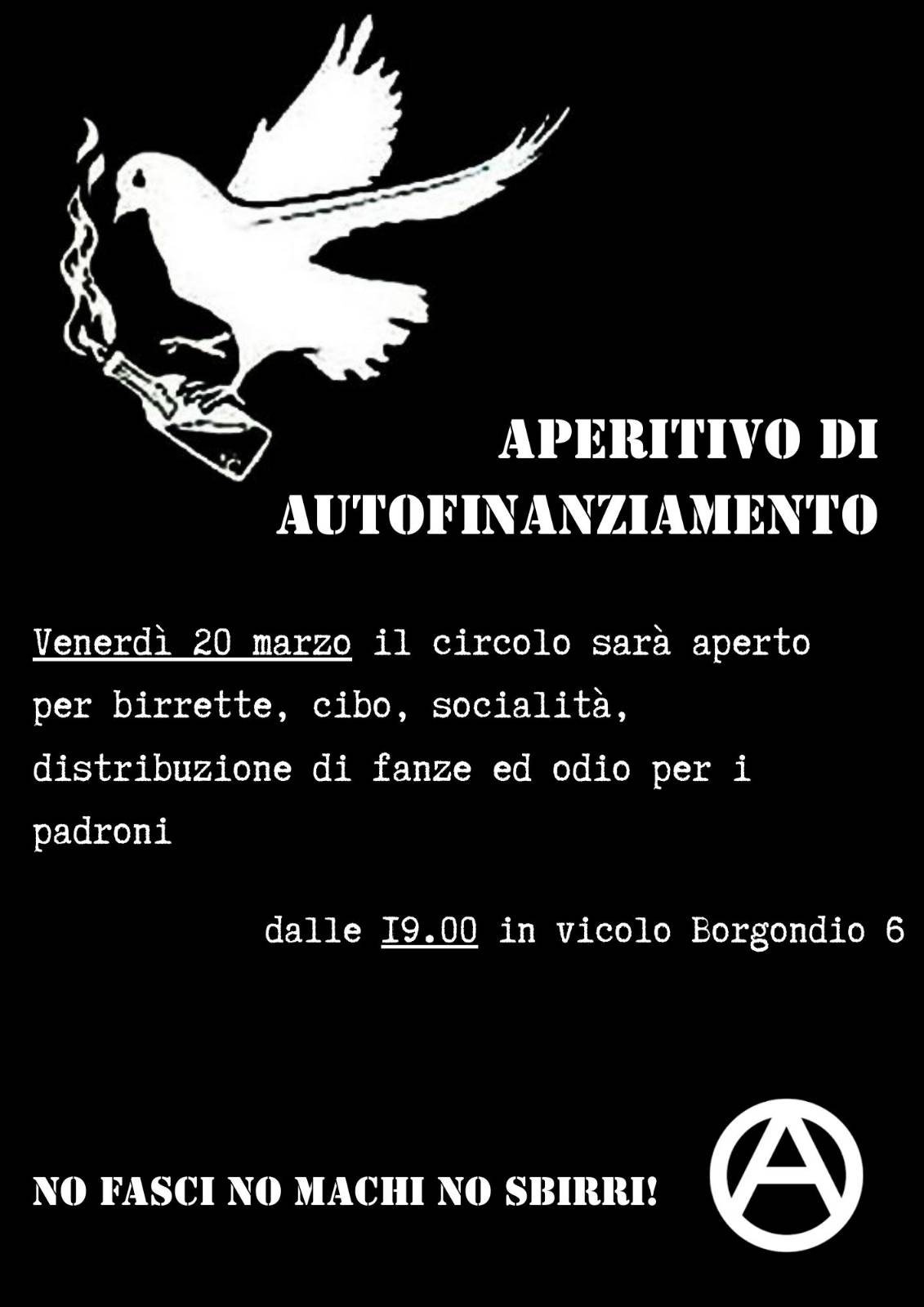 Aperitivo con birrette e cibo vegan a partire dalle ore 19:00... Fanze in distro.