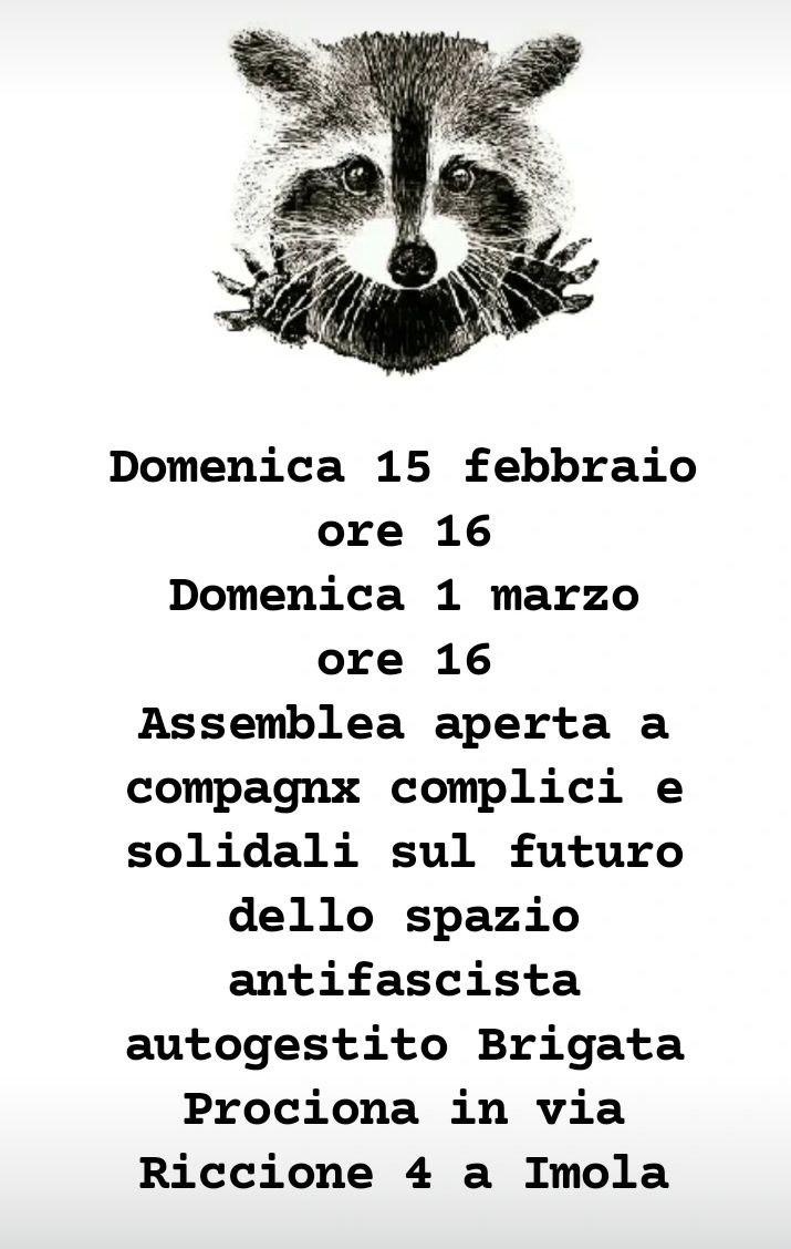 https://www.fuorinellanebbia.it/event/assemblea-aperta-brigata-prociona4, Via Riccione, Villaggio, Zona Industriale, Imola, Nuovo Circondario Imolese, Bologna, Emilia-Romagna, 40026, Italia