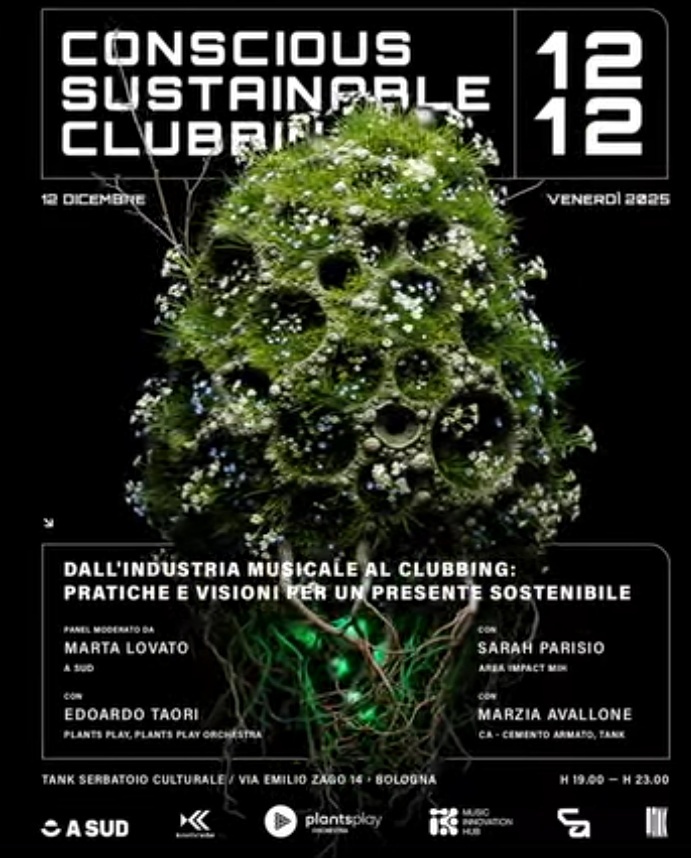 Insieme a musicinnovationhub , a.sud , plantsplay e cementoarmato_ del TANK, esploreremo come la musica è uno strumento reale di sostenibilità: dalle politiche culturali alla giustizia climatica, dall’arte bio-sonora alla club culture come spazio di trasformazione.