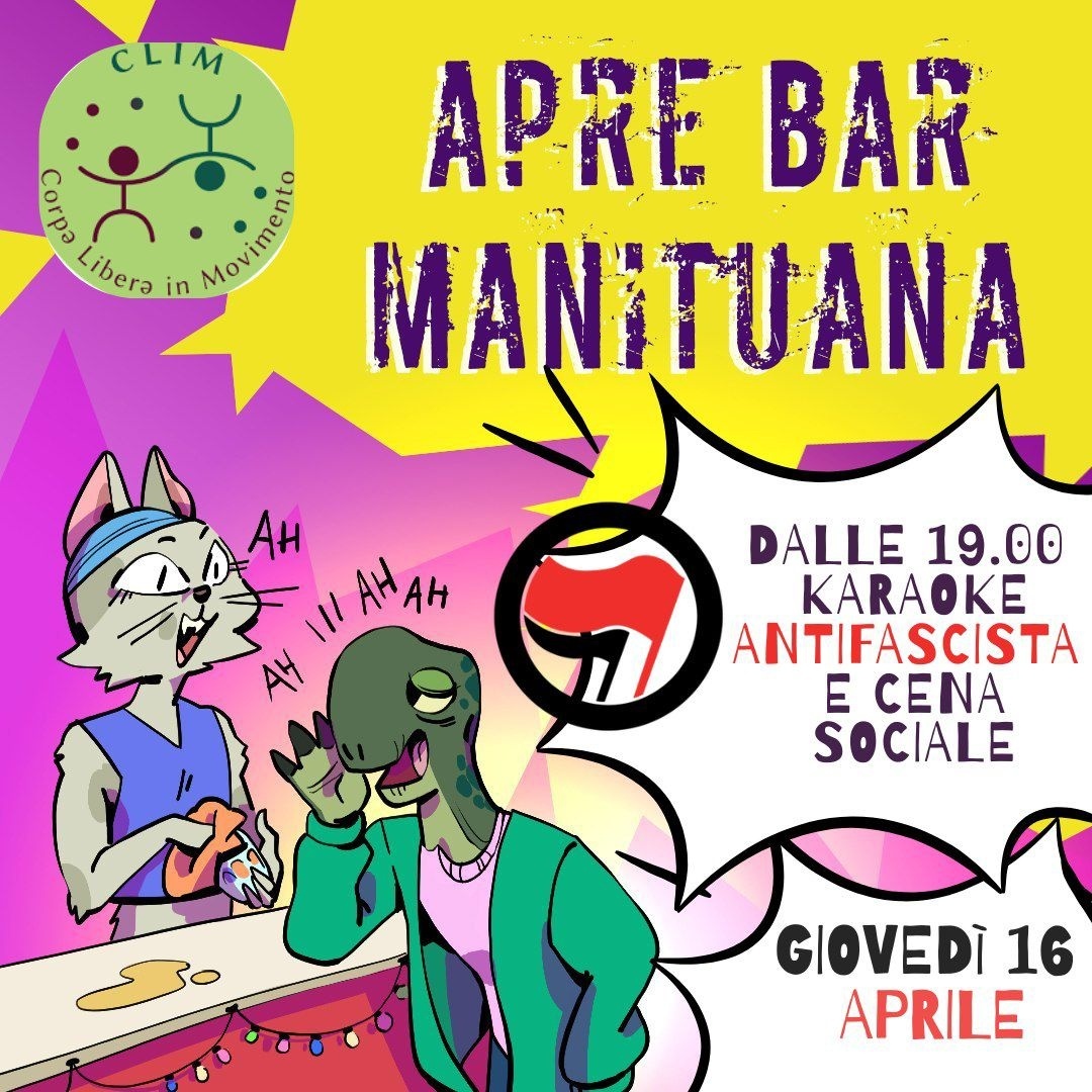 Giovedì 16 aprile dalle h.19 cantata antifascista al karaoke tuttə insieme e cena sociale vegana GRAB 🎤
