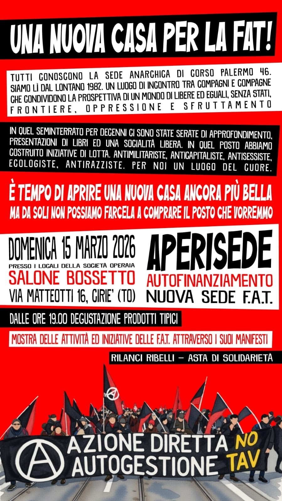 Tutti conoscono la sede anarchica di corso Palermo 46. Siamo lì dal lontano 1982. Un luogo di incontro tra compagni e compagne che condividono la prospettiva di un mondo di libere ed eguali, senza Stati, frontiere, oppressione e sfruttamento.