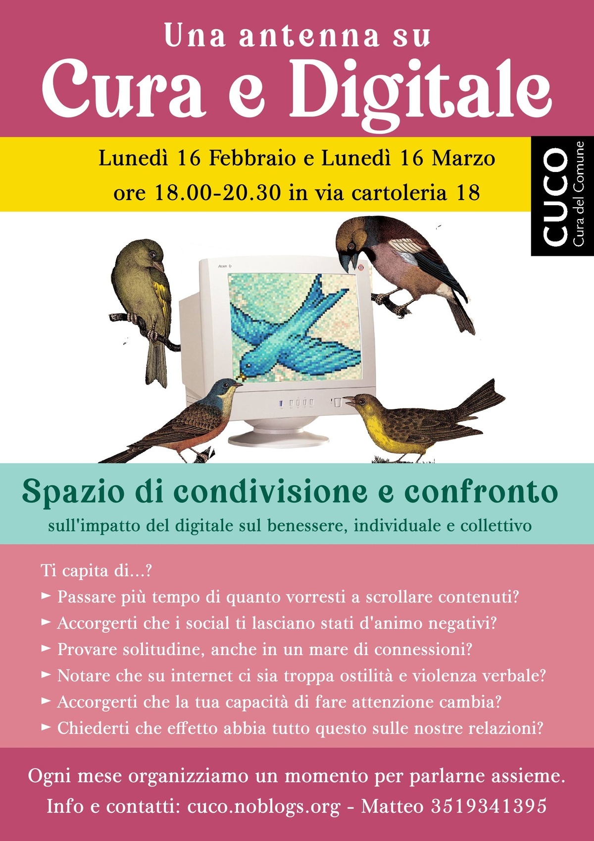 Informazioni e contatto: cuco@inventati.org cell. 351 934 1395