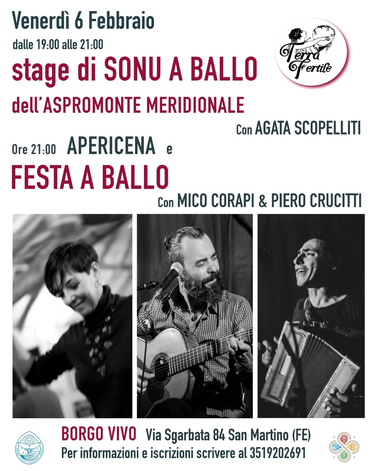 Il laboratorio è a numero chiuso ed è obbligatoria la prenotazione, per la cena ed il concerto è caldamente gradita!