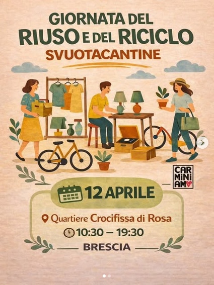 Torna lo Svuotacantine , la giornata dedicata al riuso e alla sostenibilità ideata e organizzata da Carminiamo nei diversi quartieri cittadini: un’occasione per dare nuova vita agli oggetti, curiosare tra le bancarelle e vivere il quartiere.