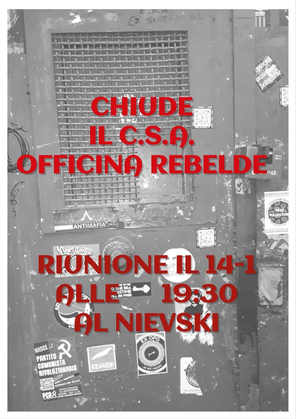 IL C.S.A. OFFICINA REBELDE CHIUDE, CAPIAMO ASSIEME COME PROSEGUIRE