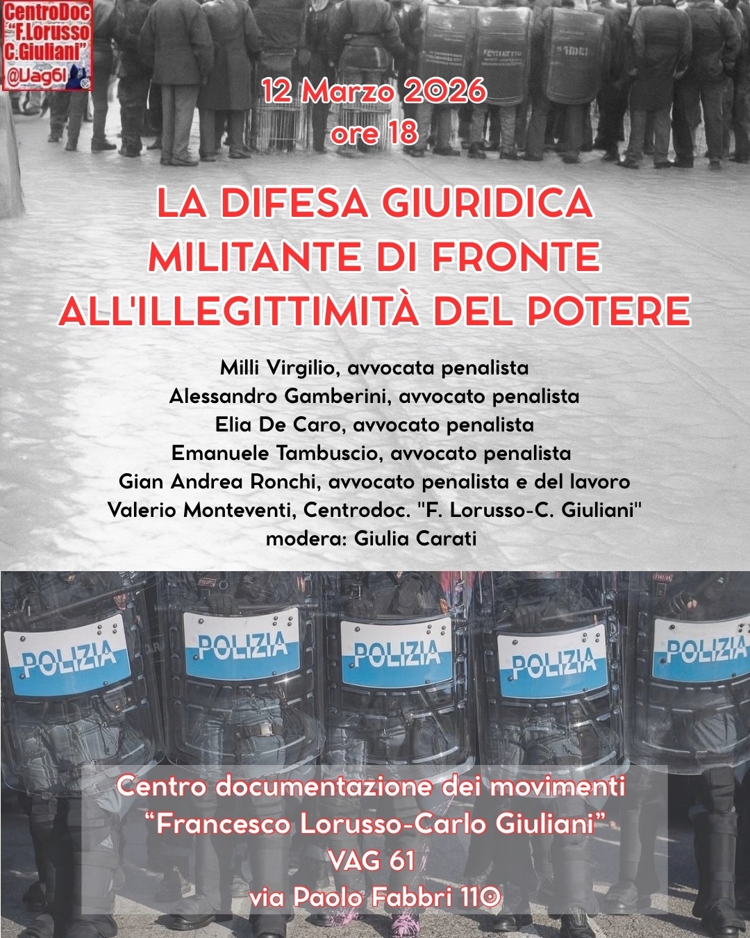 E oggi, al tempo del populismo penale, dei ripetuti “decreti sicurezza” e delle zone rosse, di fronte a una nuova (inventata) “emergenza antagonista”e a un clima repressivo da “Stato di Polizia” come si organizza e si mette in relazione l'assistenza legale di compagne e compagni?