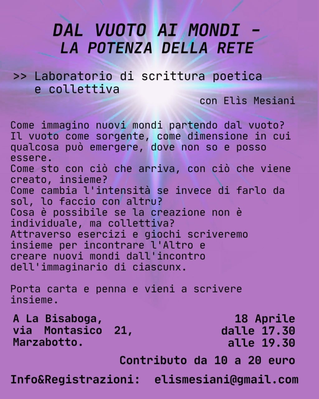 Per info e registrazione: elismesiani@gmail.com