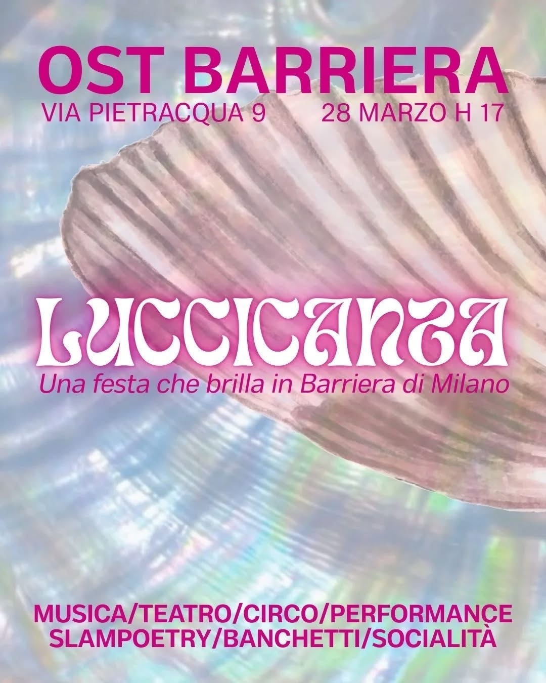 Siamo felici di invitarvi Sabato 28 alla prima edizione di LUCCICANZA, una festa e uno spettacolo nato dall’esigenza di dare spazio ad artisti emergenti e non in Barriera di Milano.