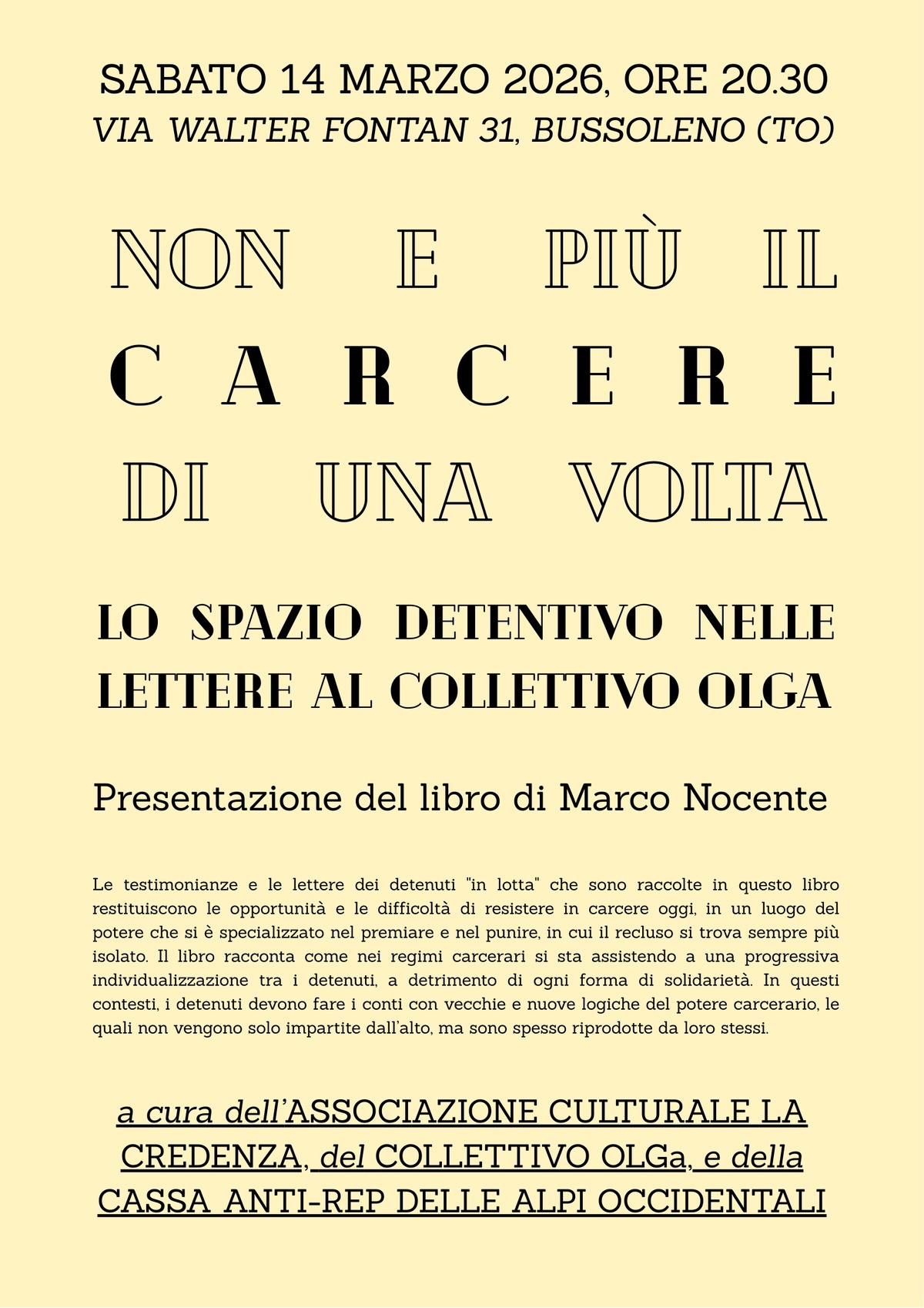 https://gancio.cisti.org/event/presentazione-del-libro-di-marco-nocente-non-e-piu-il-carcere-di-una-volta-lo-spazio-detentivo-nelle-lettere-al-collettivo-olgaVia Walter Fontan 31, Bussoleno (TO)