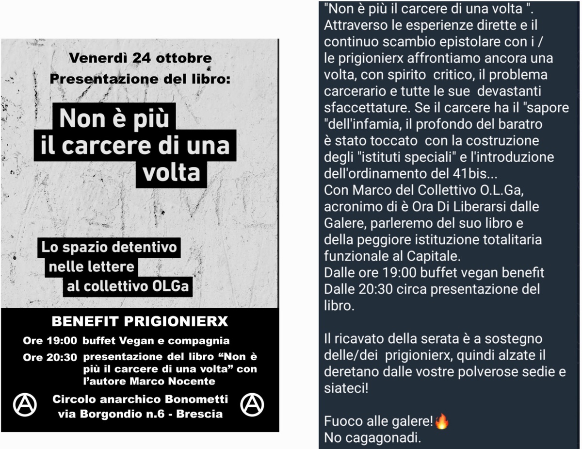 Ore 19:00 aperitivo vegan benefit prigionierx .