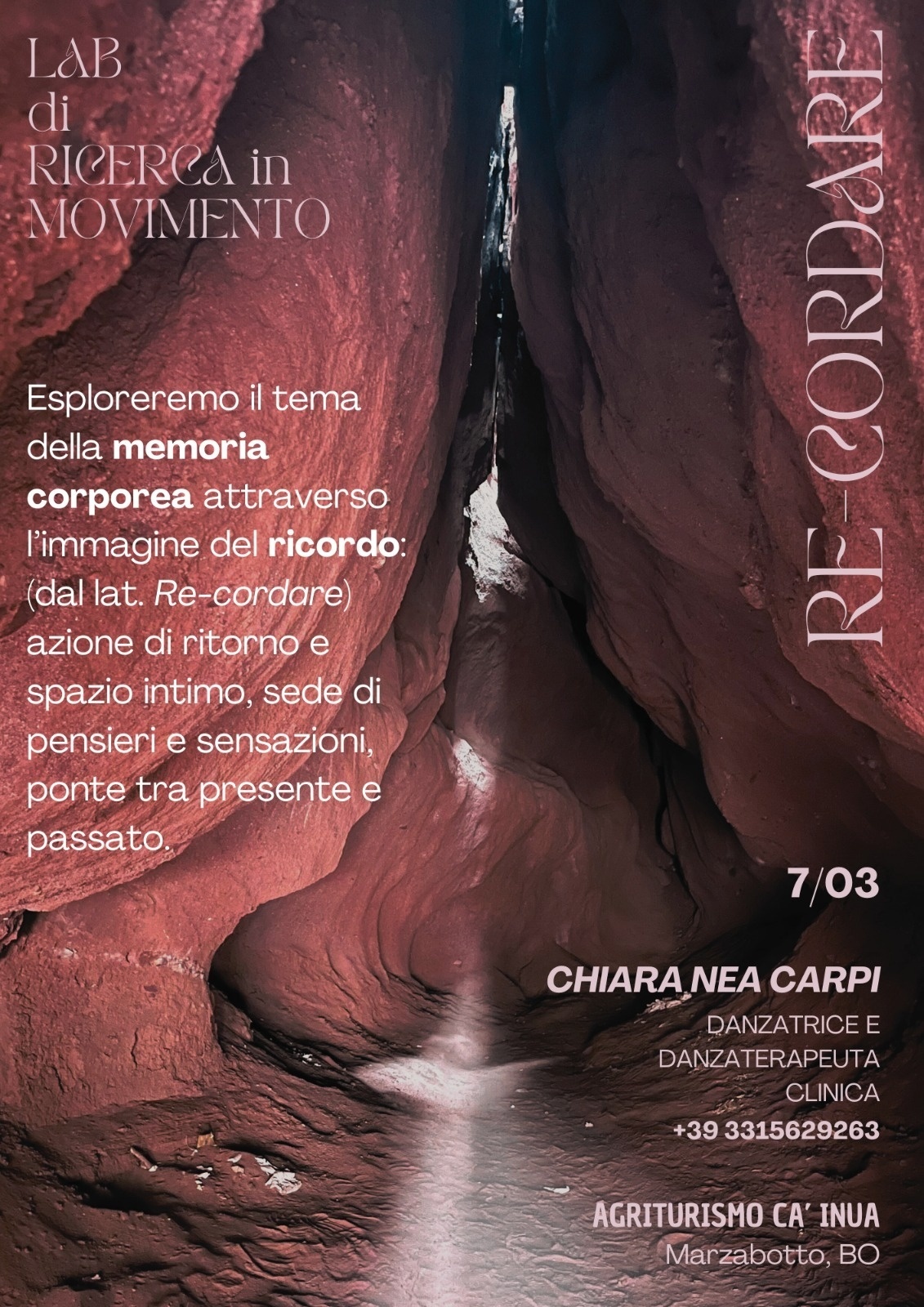 Dall’etimologia della parola Ricordare: lat. Re-Cordare, nasce il desiderio di indagare la memoria del corpo come azione di ritorno a sé, come spazio di ascolto e conoscenza, luogo mai uguale a se stesso.