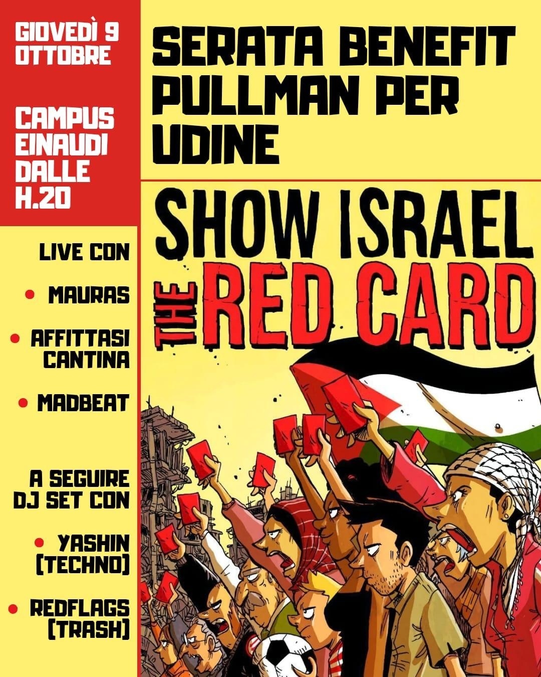 Lo sport e il calcio non possono più essere strumento di legittimazione per politiche genocidarie e di occupazione, per questo chiediamo l’esclusione di Israele dalla FIFA e che Udine non ospiti quella partita infame.