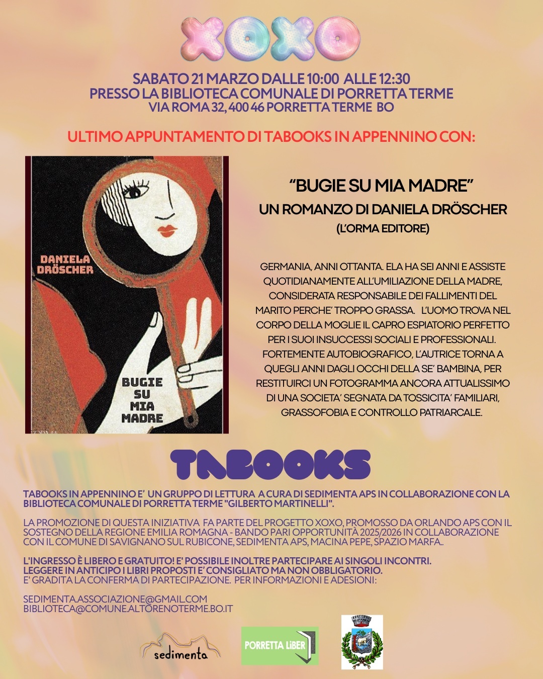 il 21 marzo 2026 dalle 10 alle 12:30 chiudiamo il ciclo con il romanzo Bugie su mia madre, di Daniela Droscher per L'Orma Edizioni.