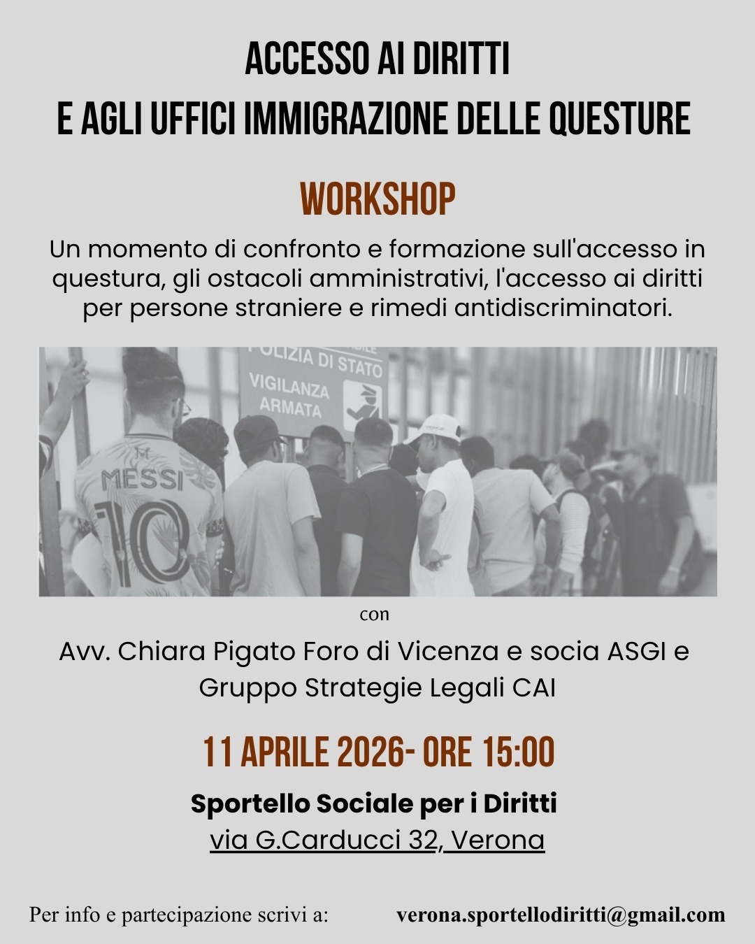 Per partecipare inviare una e-mail a: 👉 verona.sportellodiritti@gmail.com