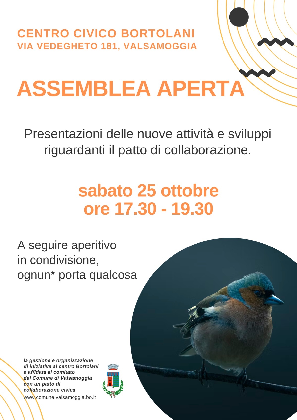 https://agenda.reteappenninica.it/event/assemblea-aperta-del-centro-civico-bortolani-3181, Via Vedegheto, Cà Bortolani, Valsamoggia, Unione dei comuni Valli del Reno, Lavino e Samoggia, Bologna, Emilia-Romagna, 40053, Italia