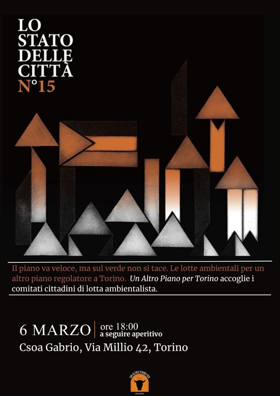 La serata è organizzata dall'assemblea Un Altro Piano per Torino, che da anni si batte per criticare il nuovo piano regolatore in gestazione e per immaginarne uno alternativo. Le singole lotte territoriali hanno il merito di figurare un'idea alternativa di città, opposta allo spazio aperto alle speculazioni sognato dalle classi dirigenti al potere. Proprio il ragionamento critico sul piano regolatore voluto dall'attuale amministrazione può essere la cornice riflessiva capace di accogliere e interpretare le lotte in corso, fornendo loro un'ulteriore occasione per consolidarsi in una prospettiva di collaborazione.